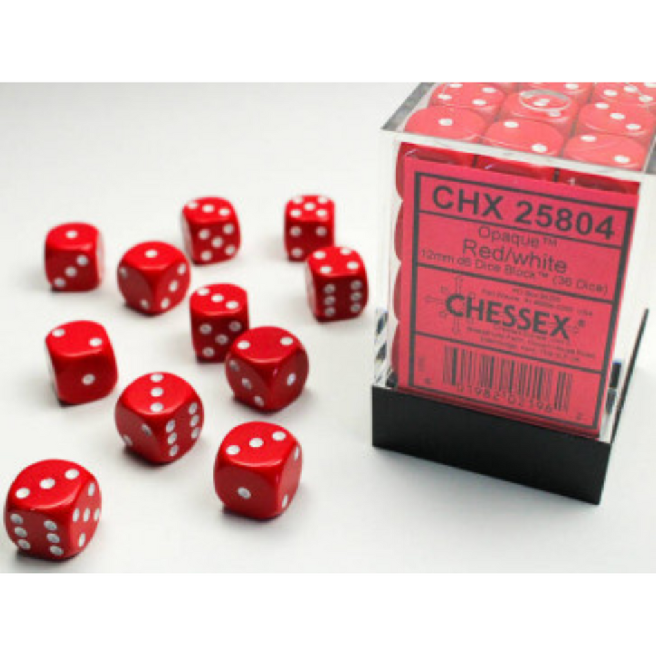 Chessex 12mm D6 Dice Block Opaque Red/White
