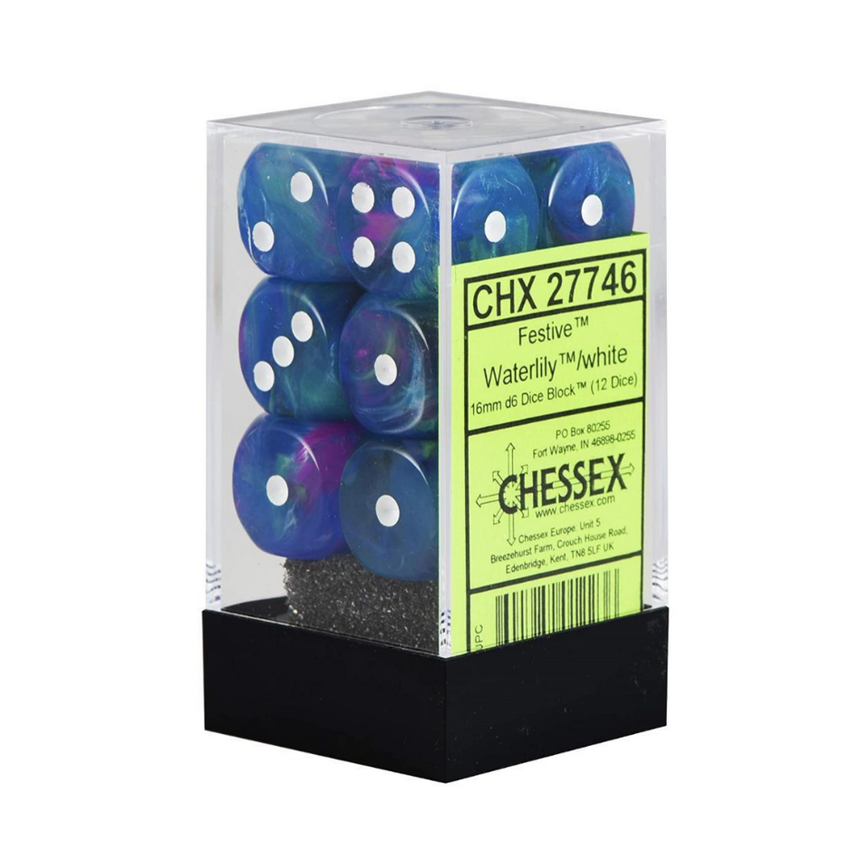 Chessex Festive 16mm d6 Waterlily/White Block (12)