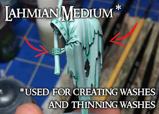 Lahmian Medium is a colourless medium which can be mixed with a Layer paints to create glazes to apply to your models. It is also pretty handy for sealing a transfer to a miniature and providing a smooth matte finish.