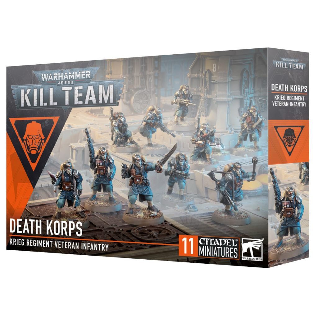 This multipart plastic kit builds 10 Death Korps of Krieg, plus an extra Medikit model. These miniatures can be used as Death Korps operatives in games of Kill Team, or fielded in Astra Militarum armies in games of Warhammer 40,000. The kit includes options and accessories to customise your kill team, plus components to build specialists like the brutal Bruiser, mine-laying Sapper, uplifting Zealot, and more.