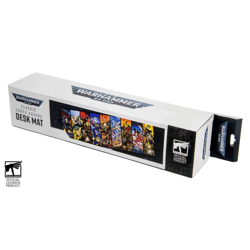 Add a touch of nostalgia to your workspace with the Warhammer 40,000 Classic Codex Desk Mat. This official desk mat features iconic covers from Warhammer 40,000 2nd Edition, perfect for fans of the classic game.